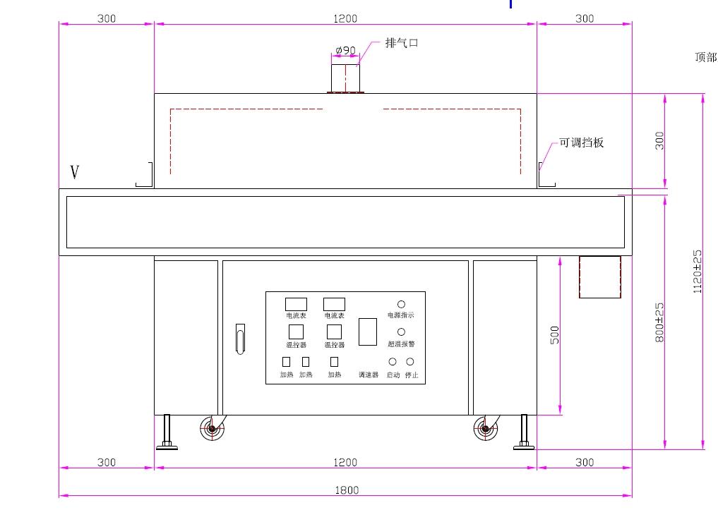 | 十一、溫區:1段(2溫區控製) | 十二、輸送速度:0~3m/min |