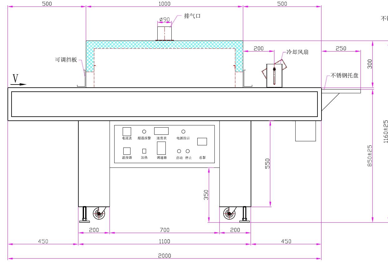 | 3. 采用無級調速 | 4. 輸送材料:不鏽鋼網帶 |