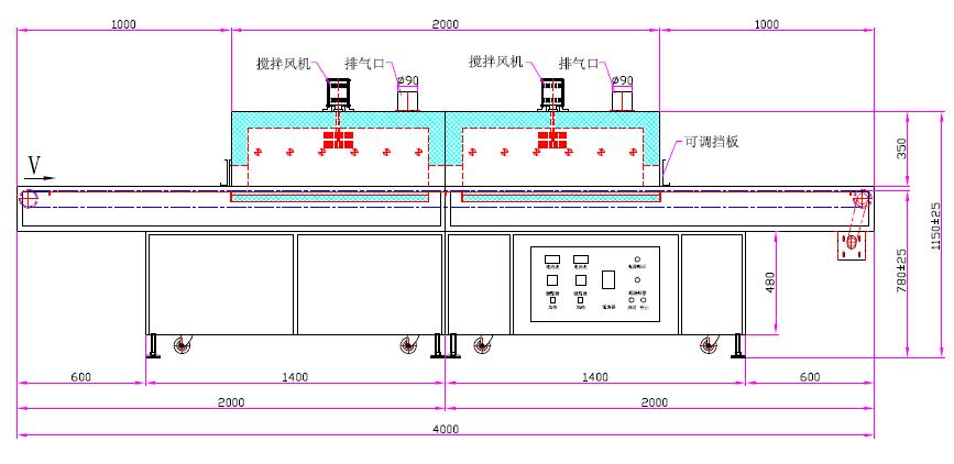 | 4、輸送速度:0~5m/min | 5、入口高度:100mm |
