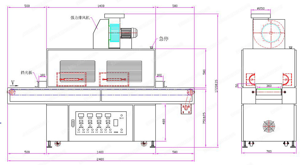1、UV燈功率:3.0kw*4支 2、UV燈總長:400mm、弧長:300mm