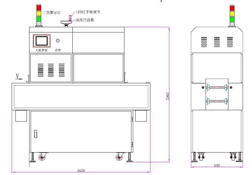 3、LED燈照射麵尺寸:200*25mm*2組 4、人機界麵觸摸屏控製