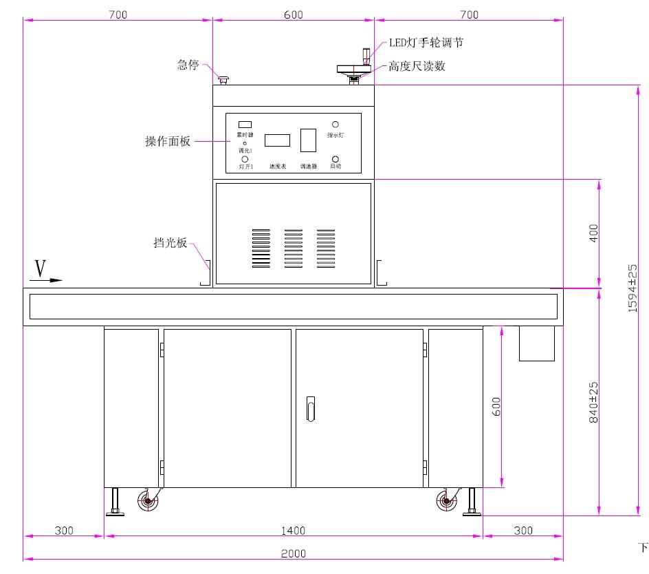 | 9、輸送速度:0~8m/min(速度表直接讀數) | 10、入口高度:50mm |