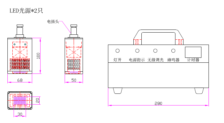 5、照射麵:30*20mm 6、雙燈頭、計時器功能