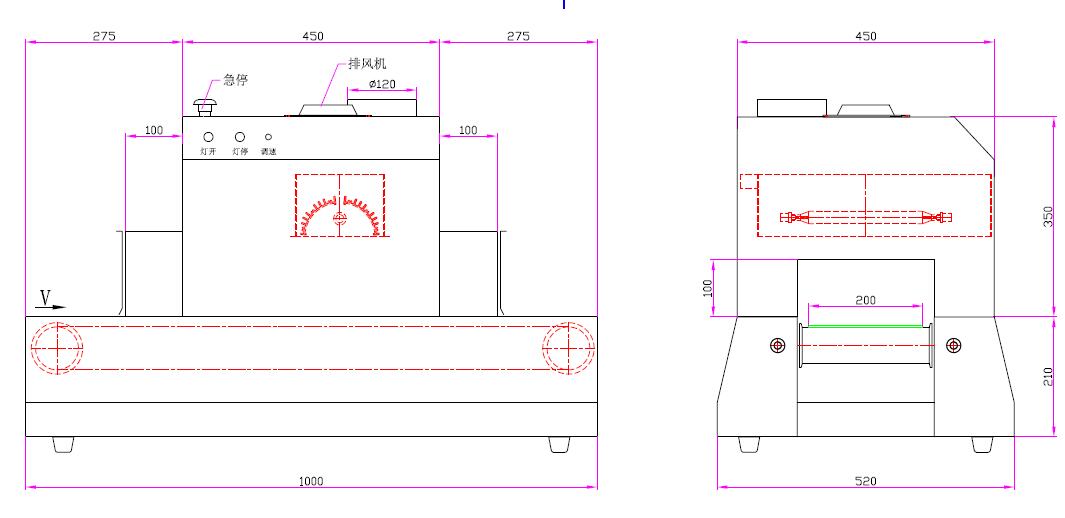 | 9、入件口高度:100mm | 10、控製箱連接線有效長:4M |