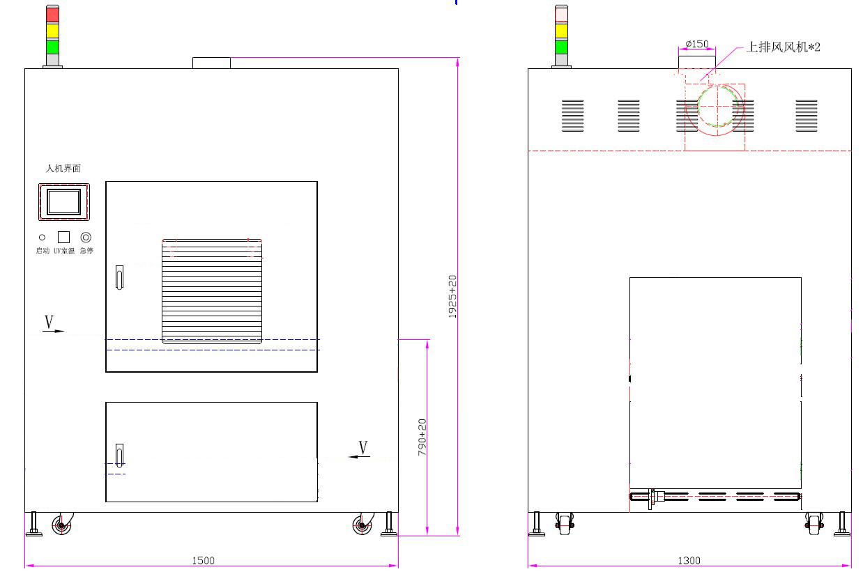 7、UV燈高度電動調節,軌道手動調節 8、采用上排風係統