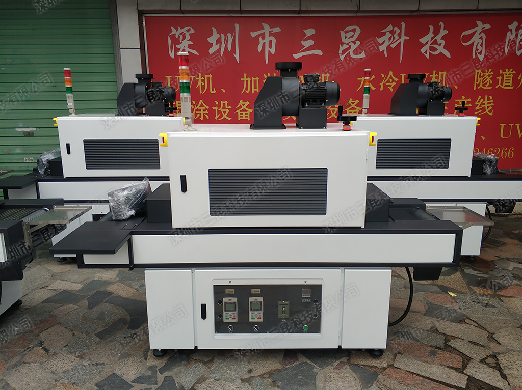 本UV杏吧论坛十年專為工業塗裝、印刷及精密製造設計,搭載雙支2.0kW大功率UV燈管,主波峰365nm精準匹配光引發劑需求,支持20%-100%電子電源無級調節,適應不同固化強度場景。配置進口插片反射器與光學濾光鏡片,提升能量利用率,結合上下排風係統保障作業環境安全。特氟龍網帶導條設計耐高溫、抗粘附,輸送寬度300mm,速度0-5m/min可調,適配金屬、玻璃、塑膠按鍵等材料。內置UV燈累